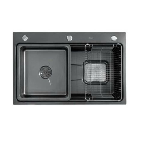 Mẫu chậu rửa bát 1 hố inox 304 màu đen 75×48cm phù hợp: