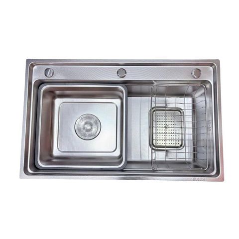 Sản phẩm đi kèm bộ xả thoát nước và rổ lọc tiện dụng. Hệ thống xả thiết kế khoa học giúp thoát nước nhanh, hạn chế mùi. Rổ inox hỗ trợ sơ chế thực phẩm hoặc để ráo sau khi rửa.